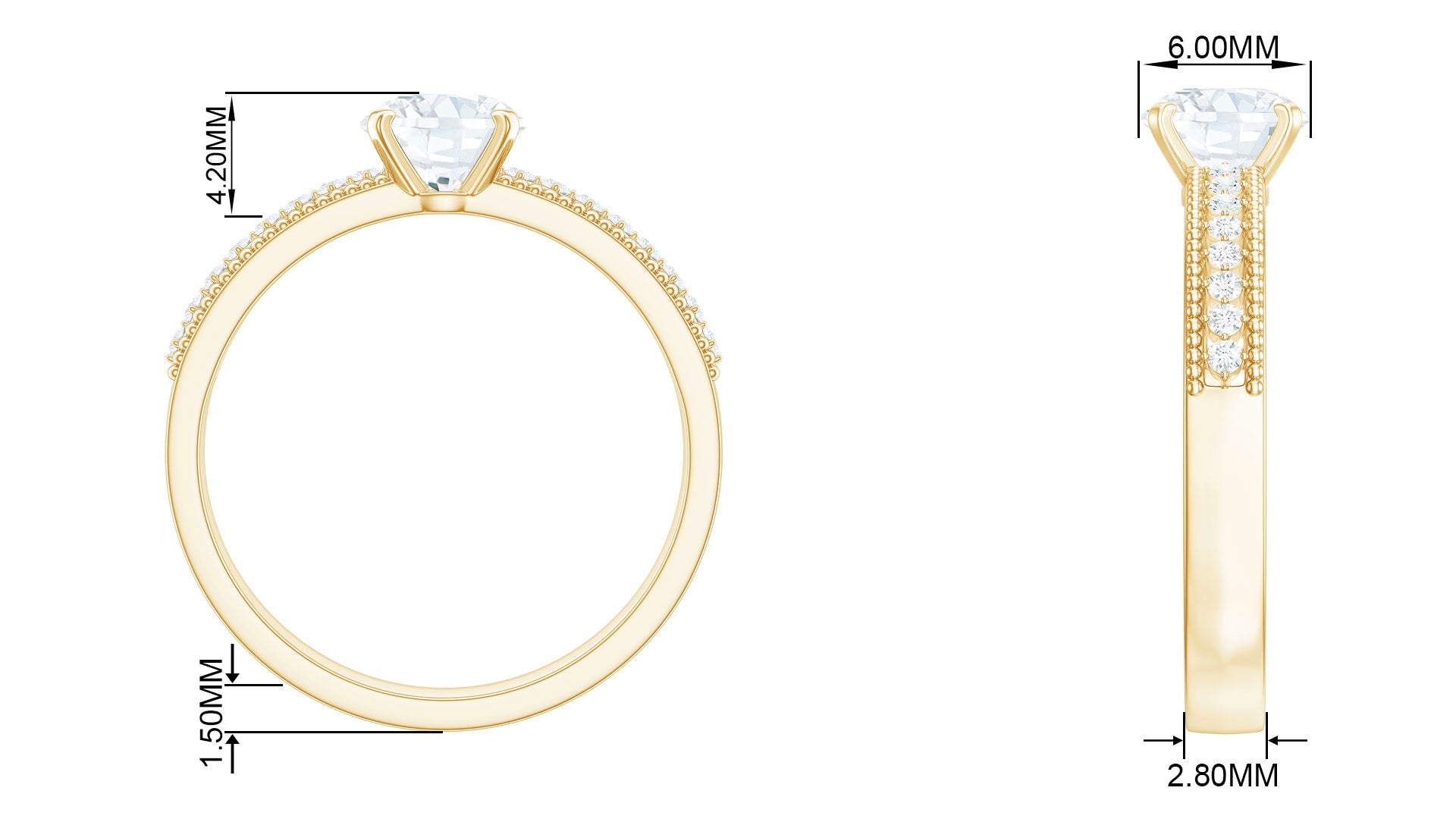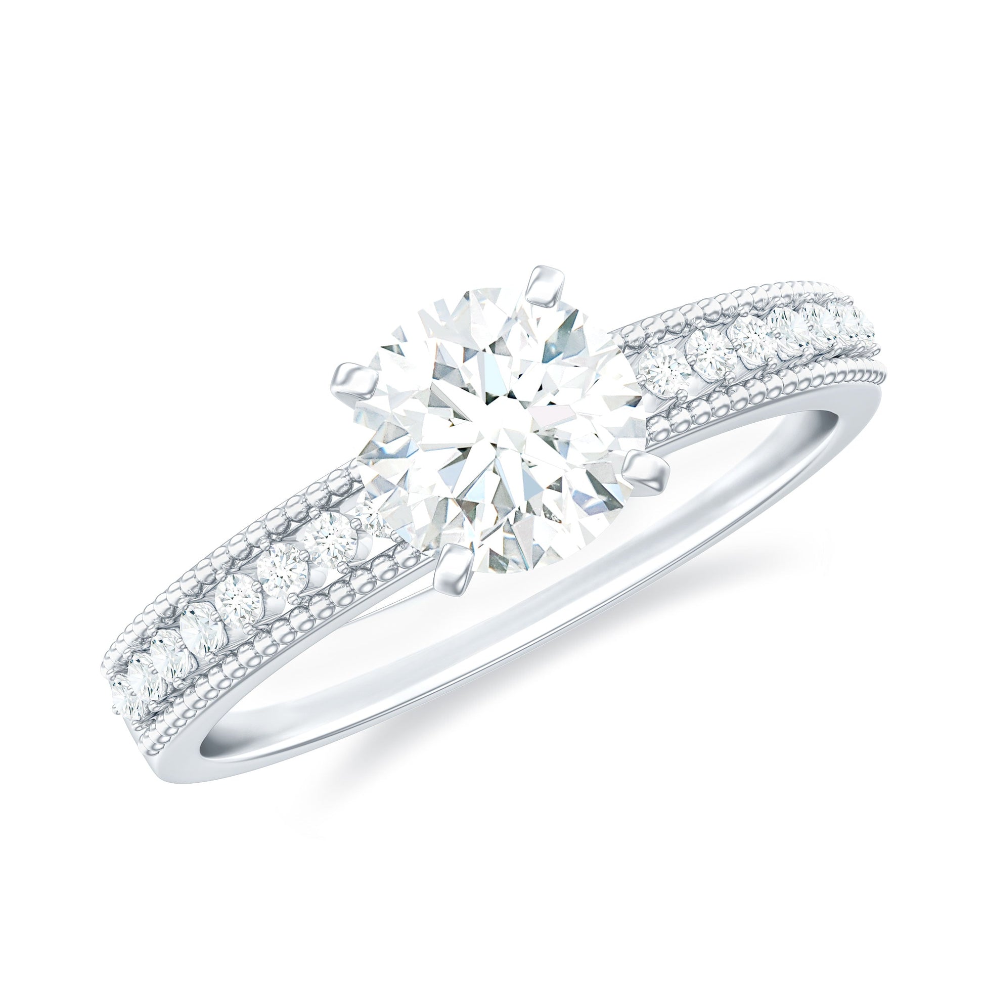 This elegant Solitaire Engagement Ring showcases a dazzling 6 MM round shaped diamond in secure prong setting. The band of this man made Diamond Ring is adorned with intricate beaded detailing and a row of sparkling accents, adding a touch of vintage charm to its modern design. Crafted with care, the lab grown diamond is ethically sourced and eco-friendly, making it a meaningful choice for couples who value sustainability. Its timeless design ensures it will be cherished for a lifetime, while the included certificate of authenticity assures its quality and value. Make your proposal unforgettable with a Round Cut Diamond Engagement Ring that is as special as your love.