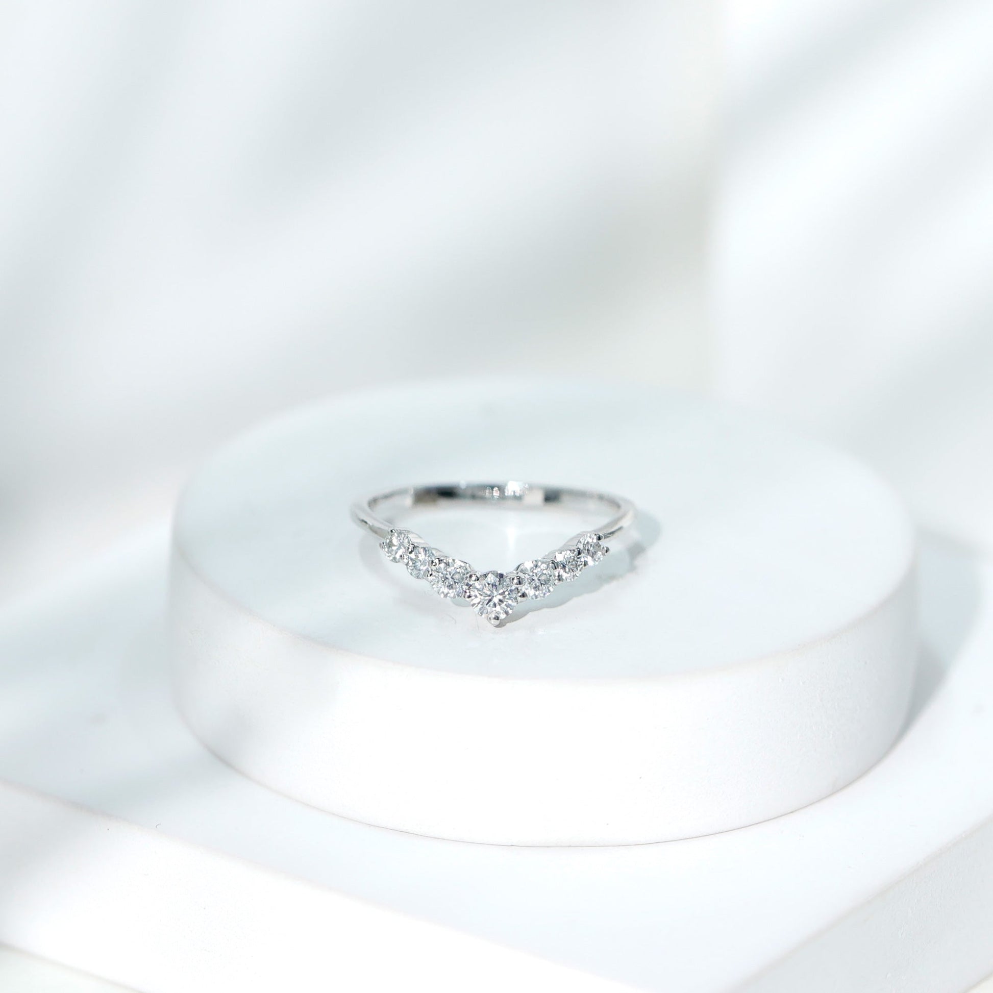 Crafted by Rosec Jewels, this Lab Grown Diamond Enhancer Ring showcases a stunning arc of graduated diamonds, representing how genuine love beautifully bends but never breaks. It boasts a chic and elegant design featuring round cut lab grown diamonds of EF-VS quality, all securely set in prong setting. The band is gracefully curved in a chevron style, making it a perfect pick for women looking to add more sparkle or a fresh look to their engagement ring. Whether worn alone as a bold statement or stacked with another ring, this Curved Ring captures the essence of love, elegance, and brilliance. This Lab Grown Diamond Ring Guard includes a certificate of authenticity and comes in a signature jewelry box, allowing you to keep your ring safe when it is not being worn. With options for customization, you can turn this Stackable Band Ring into something truly unique.