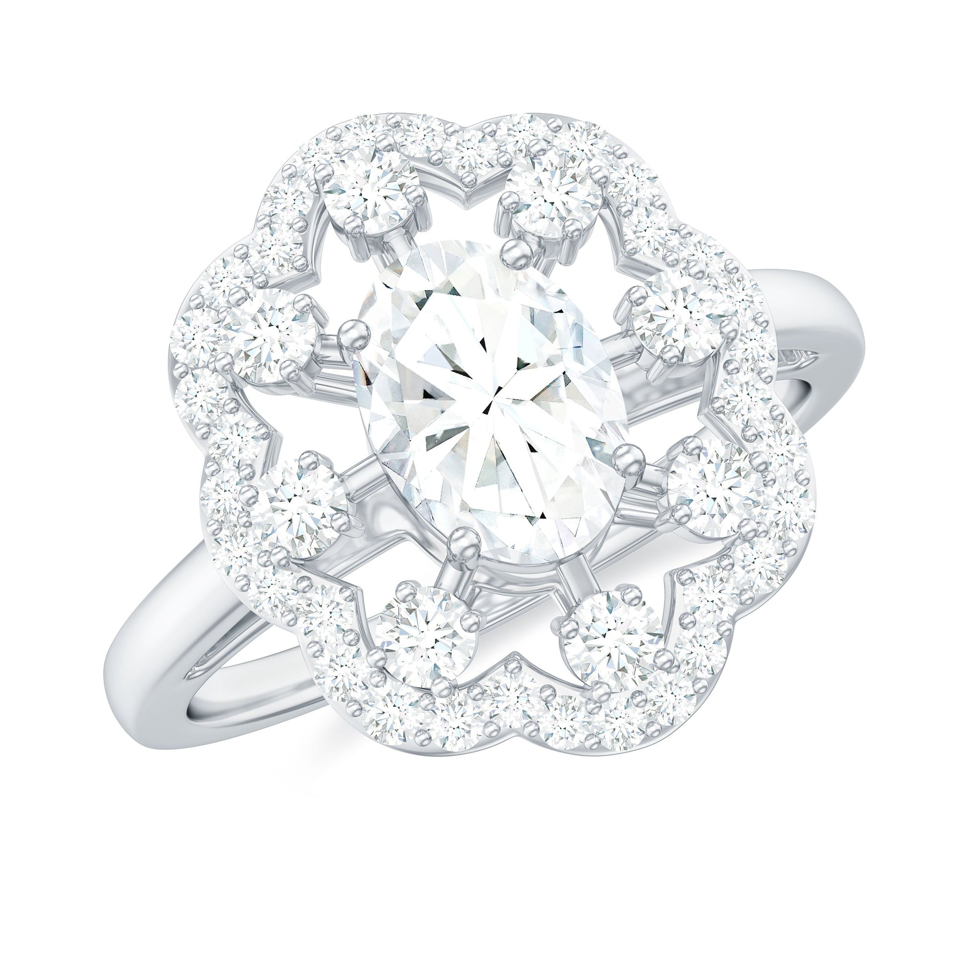 This Lab Grown Diamond Ring is bold and stunning and has a unique design that wont let you take your eyes off it. Characterized by a large center gemstone catching the eye with 5X7MM Oval Shaped Lab Grown Diamond in Prong Setting at its heart. Creating a mesmerizing sparkle is the halo of Lab Diamond that adds drama to the design. To make it look more diverse is the floral shaped frame studded with diamonds which are meticulously arranged to enhance the central diamond allure. As a bold declaration of love, this Floral Diamond Ring is perfect for the one who dares to be different. This Diamond Cocktail Ring makes a statement capturing every moment with breathtaking brilliance.