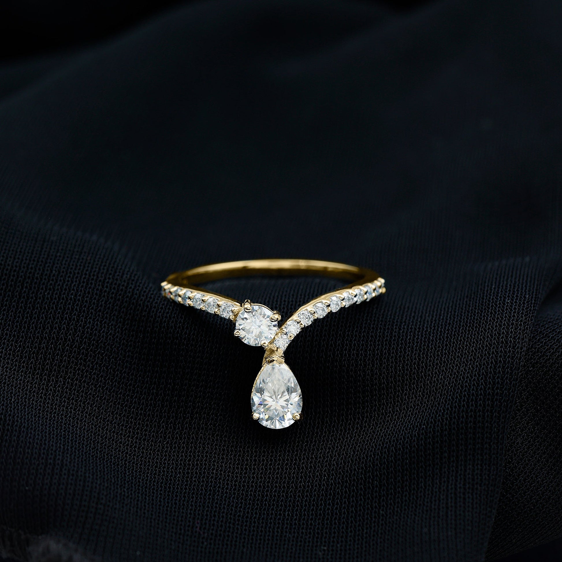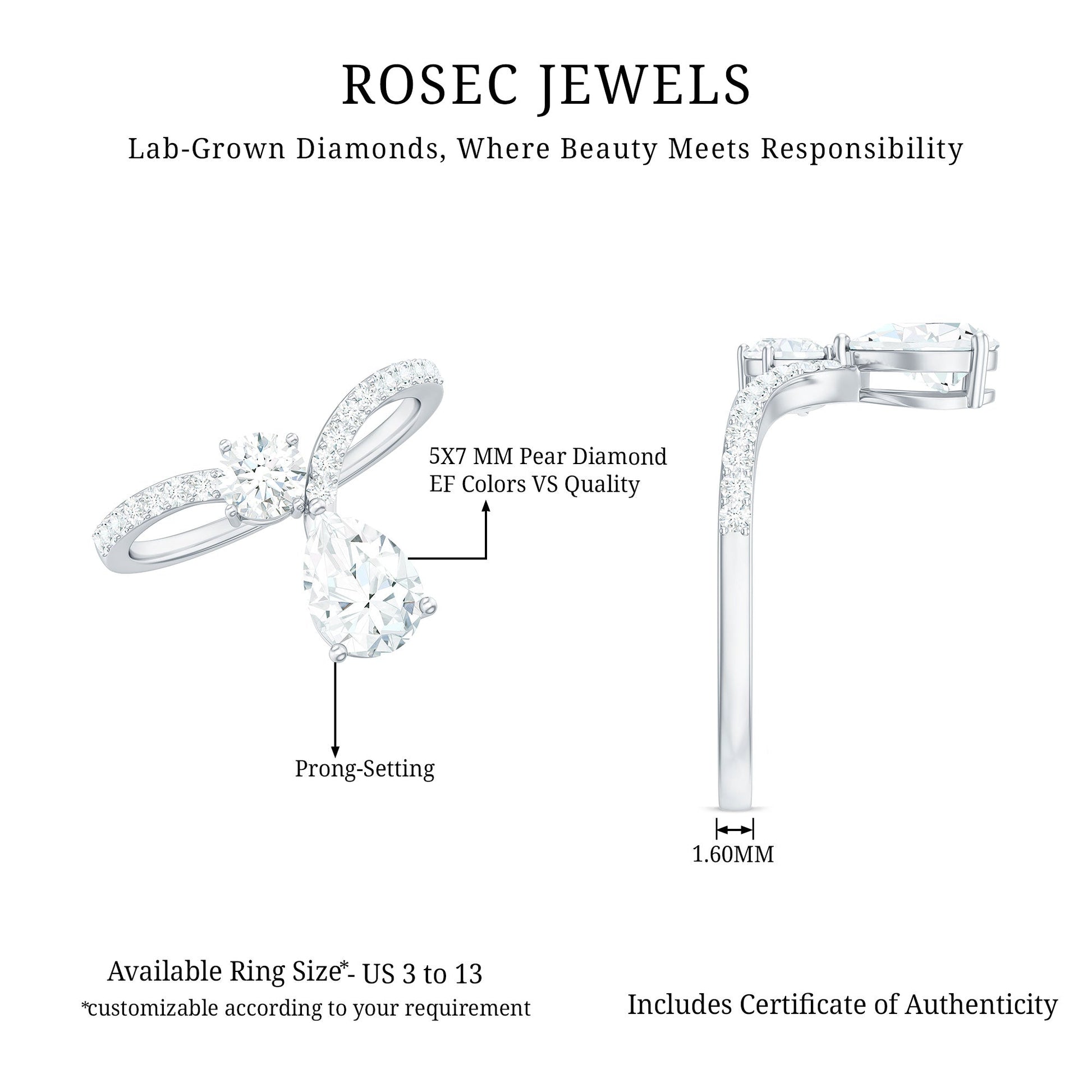 This stunning Lab Grown Diamond Engagement Ring is sure to impress anyone who sees it. At its center, it features a 5X7 MM pear-shaped diamond of EF-VS quality set in prong setting, making it ideal for any woman. The V-shaped band is adorned with shimmering round cut diamonds, offering a brilliant sparkle from every angle, and it is made from high-quality metal for comfortable wear all day long. Its unique and elegant design makes it suitable for both everyday wear and special occasions. This Chevron Diamond Ring is more than just a piece of jewelry, it exudes beauty and unconditional love. Crafted with Lab Grown Gemstones, this Designer Engagement Ring not only looks fantastic but is also eco-friendly. Start your forever with a piece that is both breathtaking and gentle on the planet. This Unique Diamond Ring for Women is a complete showstopper that will make your special day unforgettable, and the gemstone will catch everyones eye, leaving them wondering where you found such a gorgeous piece. We take care to package this Pear Shaped Engagement Ring carefully to ensure it is ready to gift upon arrival.