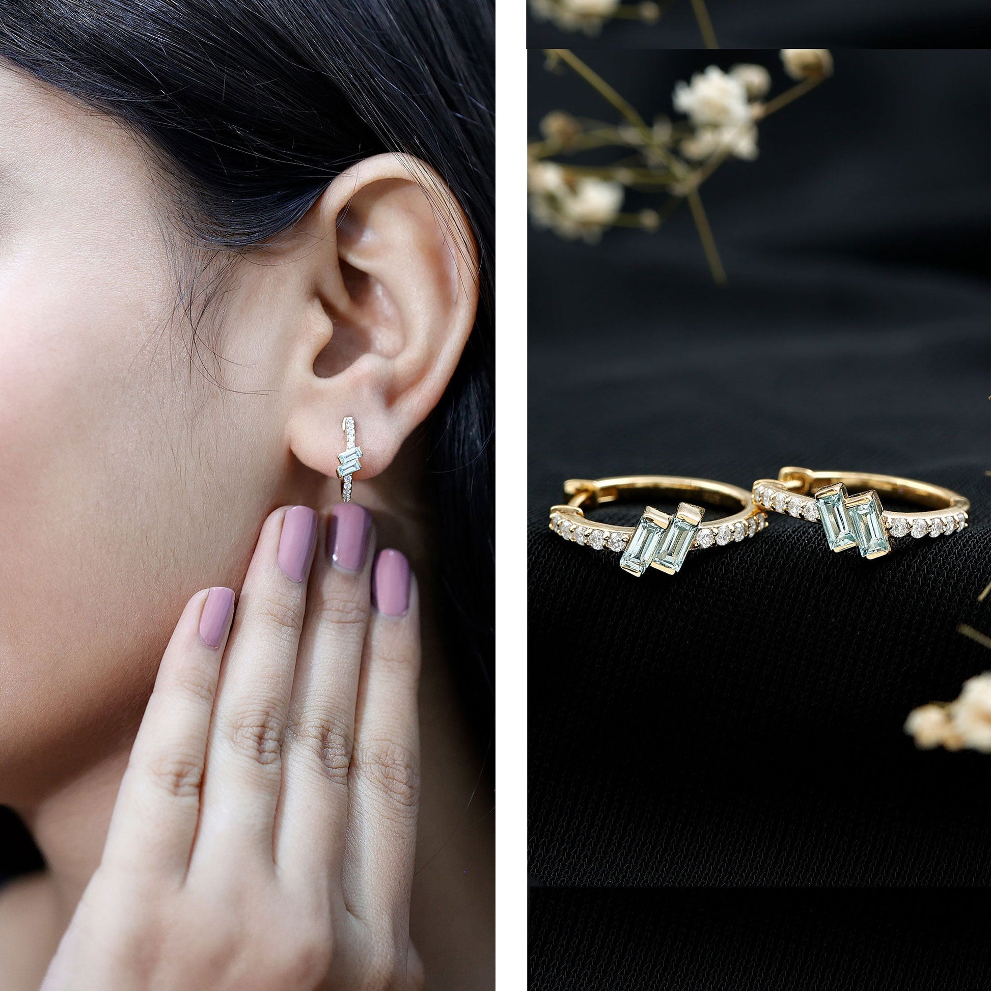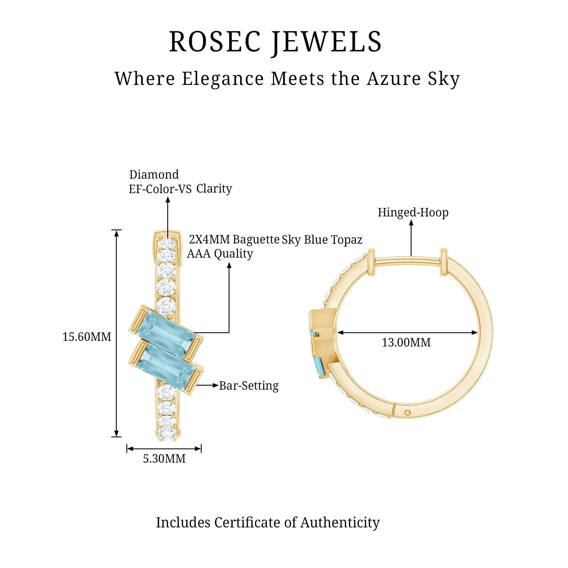 Natural Baguette Shape Sky Blue Topaz Diamond Hoop Earrings