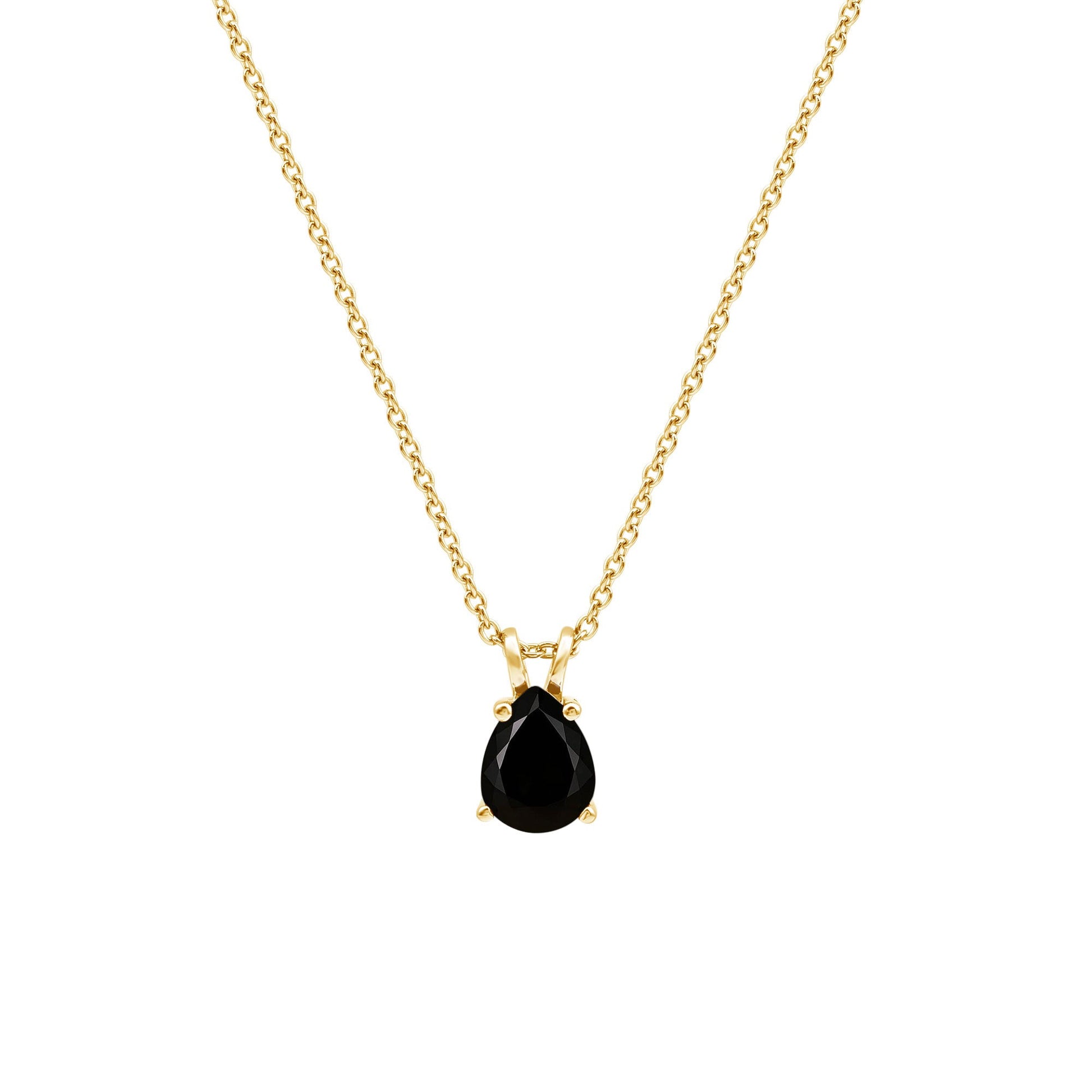 Looking for something that is simple but makes a statement? This Teardrop Pendant Necklace might just be the one. Crafted with care in 14k yellow gold plated silver, it brings together modern elegance and everyday versatility in the best way. At the heart of this pendant is a 7X9 MM pear shaped black onyx, secured in prong setting. Adding to its charm is the rabbit ear bail, which gently connects the pendant to a sturdy cable chain. This small detail adds a bit of character to the piece without distracting from its overall simplicity. The chain rests comfortably along the neckline and offers just the right drop for both layering and wearing solo. The design of this Black Onyx Necklace leans into minimalism but still feels bold. It is a go-to piece you can wear with your everyday outfits or even on more dressed-up occasions. The mix of contrast between the dark black onyx and the warm golden tone gives it a little extra personality while keeping things elegant. Whether you are gifting it or adding it to your own collection, this Black Onyx Solitaire Necklace is one of those pieces you will keep reaching for. It comes beautifully packaged in a premium jewelry box and includes a certificate of authenticity, making it ready for any special moment.