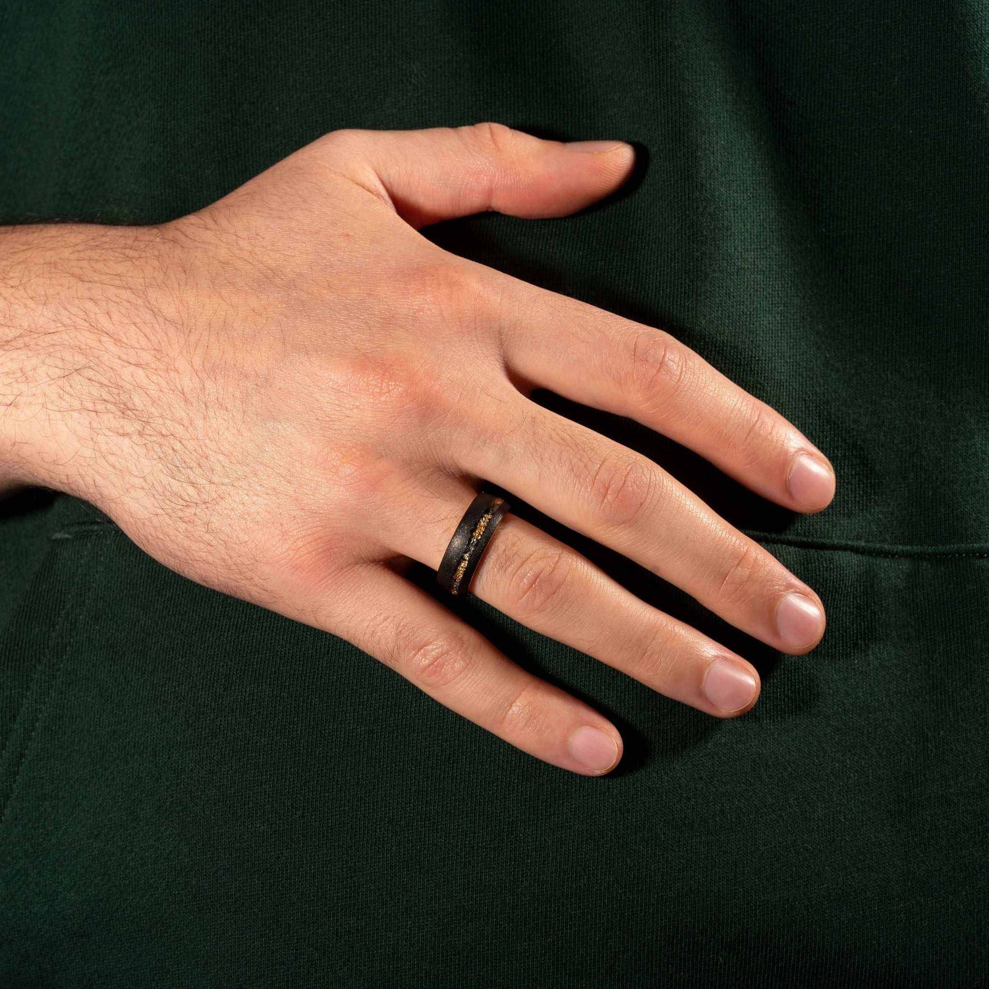 Sandblasted Gold Leaf Meteorite Ring